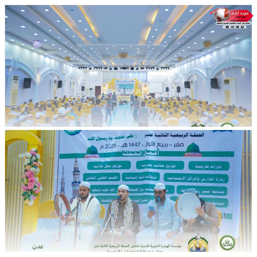 برعايةٍ كريمةٍ من مكتب الموجّه العام لأربطة التربية الإسلامية ومراكزها التعليمية والمهنية، احتضنت قاعة الجوهرة بمديرية المنصورة بالعاصمة عدن، الحفل الختامي البهيج للحملة الربيعية الثانية عشر، التي جاءت هذا العام تحت شعارٍ يفيضُ بالنور والهداية: (على نهجك يا رسول الله).