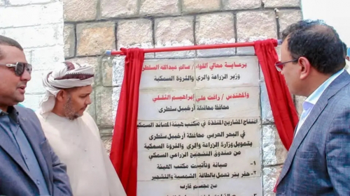 افتتح وزير الزراعة والري والثروة السمكية اللواء سالم عبدالله السقطري، ومحافظ أرخبيل سقطرى المهندس رأفت الثقلي، اليوم، المشاريع المنفذة في مكتب هيئة مصايد بحر العرب بمحافظة سقطرى.