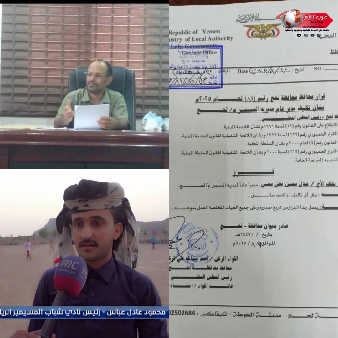 هنأ القائم بأعمال رئيس المجلس الشبابي بالمسيمير – رئيس نادي شباب المسيمير الرياضي الثقافي محمود عادل عباس الحوشبي، أخيه الأستاذ جلال محسن فضل، بمناسبة نيله ثقة القيادة السياسية ومحافظ المحافظة، بتعيينه مديرًا عامًا لمديرية المسيمير، واصفا هذا القرار بالسليم والذي أتى في وقت حساس، تحتاج فيه المديرية إلى قيادة حكيمة وفاعلة.