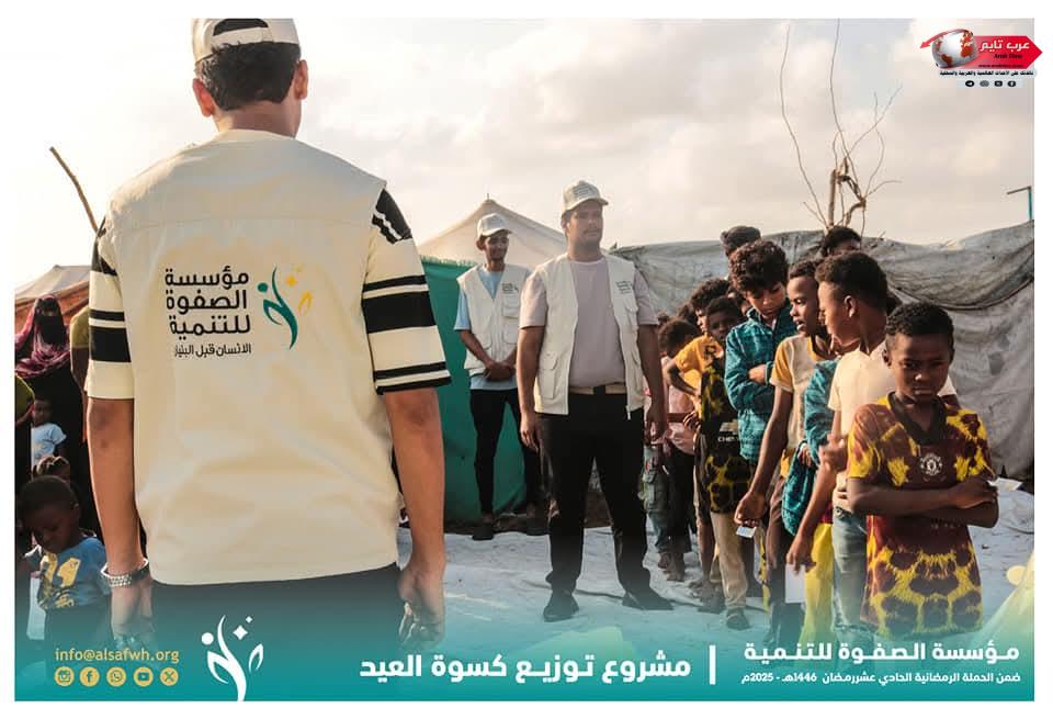 دشنت مؤسسة الصفوة للتنمية بالعاصمة عدن، تنفيذ “مشروع توزيع كسوة العيد” ضمن أعمال الحملة الرمضانية الحادية عشر “ياباغي الخير أقبل” رمضان 1446هـ، بدعم من فاعلي خير، والتي يستفيد منها سنوياً عدد كبير من الأطفال من بيوت الأسر المتعففة الفقيرة والمحتاجة والأيتام، وأطفال النازحين بمختلف مديريات العاصمة عدن.