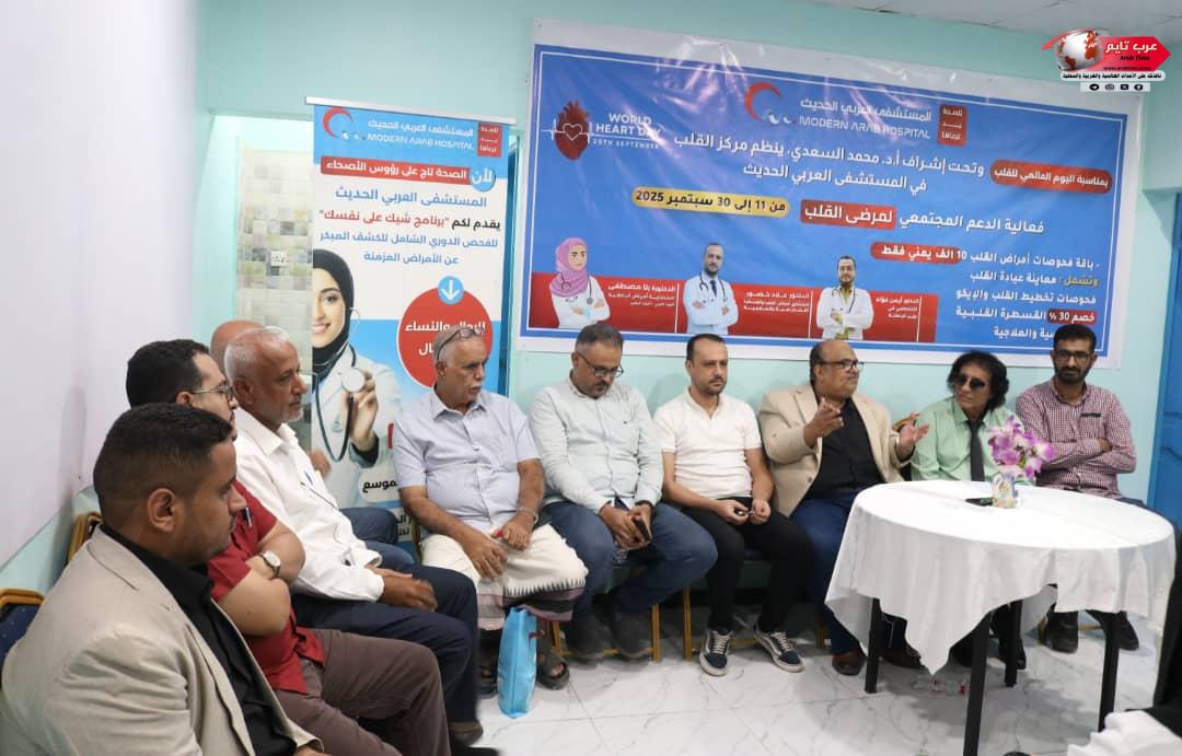 تزامناً مع اليوم العالمي للقلب الذي يصادف 29 سبتمبر من كل عام، دشن صباح اليوم في العاصمة عدن في المستشفى العربي الحديث فعالية لدعم مرضى القلب والي تستمر خلال الفترة من 11 وحتى 30 سبتمبر 2025، وذلك ضمن مسؤوليتها المجتمعية وحرصها على تخفيف الأعباء عن المرضى وأسرهم.