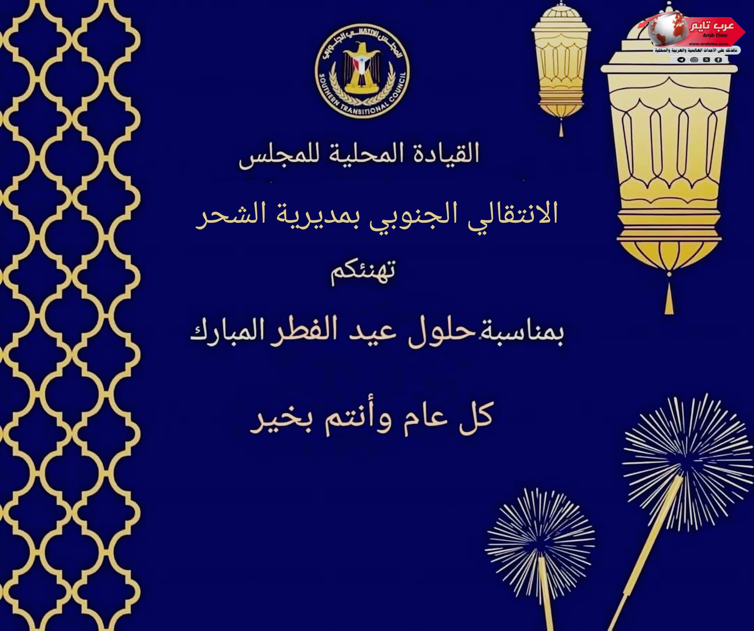 وإلى كافة أبناء الشعب الجنوبي عامة، ومواطني مديرية الشحر خاصة، بمناسبة حلول عيد الفطر المبارك.