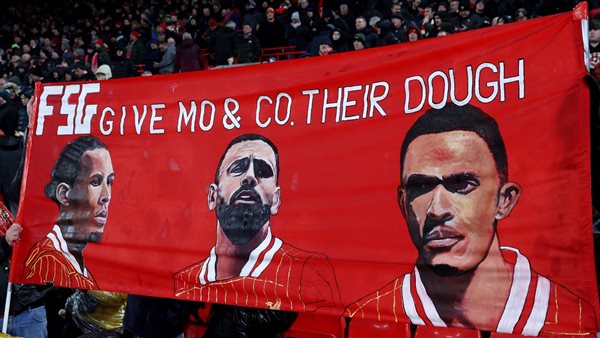 وجاء في الرسالة المكتوبة على اللافتة: “أعطوا صلاح وترينت وفيرجيل أموالهم”، وهو ما يعكس رغبة الجماهير في بقاء الثلاثي في صفوف الريدز الموسم المقبل.