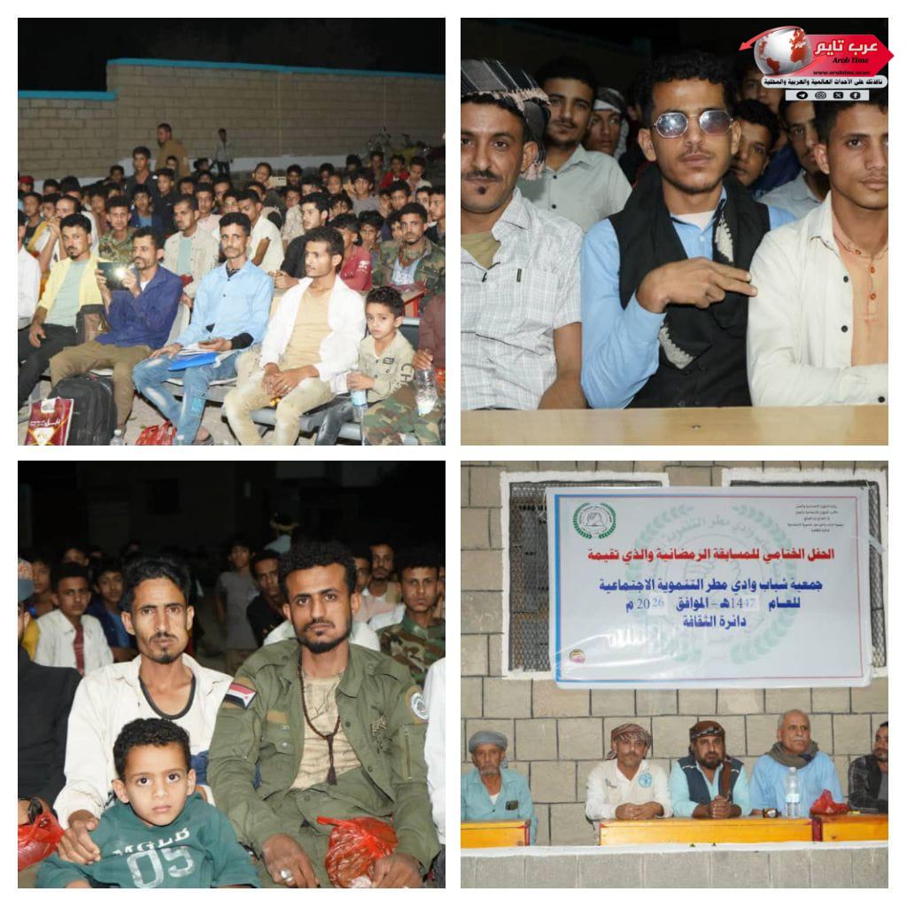 شهدت قرية وادي مطر في مديرية حجر بالضالع مساء اليوم الثلاثاء أمسية رمضانية مميزة اختُتمت فيها فعاليات مسابقة شهداء وادي مطر الرمضانية، وذلك برعاية جمعية شباب وادي مطر التنموية الاجتماعية، وسط حضور مجتمعي واسع وأجواء إيمانية وثقافية عكست روح التآخي والتلاحم بين أبناء المنطقة.