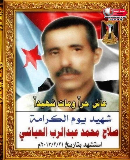 في صباح الخميس 21 فبراير 2013م، وبينما كانت أصوات الجنوب تصدح في ساحة العروض بخورمكسر – عدن رفضًا للانتخابات اليمنية، كانت رصاصات الغدر بانتظار واحد من أحرار يافع، المناضل الجنوبي صلاح محمد عبدالرب العياشي، الذي استشهد واقفًا، ليُسجَّل في ذاكرة الوطن بـ شهيد “يوم الكرامة”.