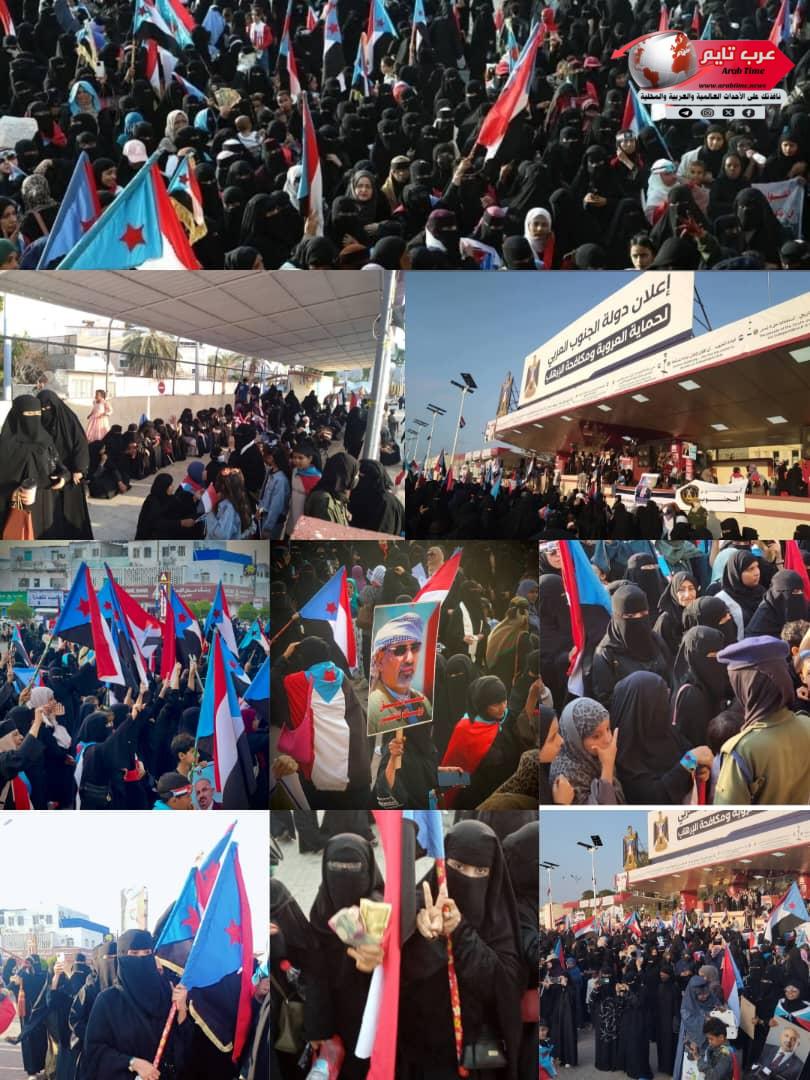 حيت شهدت العاصمة عدن اليوم مشاراكات من نساء الجنوب العربي في لوحة وطنية مدهشة جسدت وحدة الصف الجنوبي وتماسكه، واتحاد الهدف توحدت الهتافات والأهازيج الشعبية التي صدحت بها الحناجر، لتوصل رسالة صريحة إلى الرئيس القائد، تؤكد تمسك الشارع الجنوبي بمطلبه الجوهري، والمتمثل في الإعلان عن دولة الجنوب العربي، باعتباره استحقاقا وطنيا لا يقبل التأجيل، وتجسيدا لتضحيات جسام قدمها أبناء وبنات الجنوب على مدى سنوات.