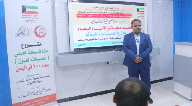 وفي حفل الافتتاح الذي أقيم في قاعة الدكتور حسين أحمد فلهوم لعلوم الرؤية وطب العيون بمستشفى رؤيا، أعرب وكيل الوزارة العامري عن سعادته بافتتاح هذا المخيم لإجراء 200 عملية إزالة المياه البيضاء وتركيب عدسات الفاكو، والتي تنفذها مؤسسة الضمير الخيرية الاجتماعية بالتعاون مع مستشفى رؤيا بسيئون وبدعم من جمعية صندوق رعاية المرضى بدولة الكويت الشقيقة، وللمرة الخامسة تقيم المؤسسة هذه المخيمات في وادي حضرموت، تقدم للمواطنين خدمات طبية مجانية ومتقدمة.