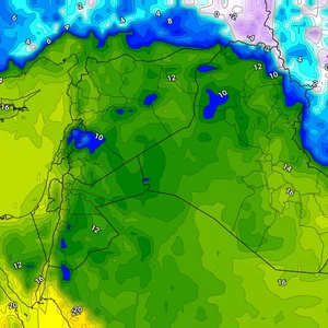 عرب تايم – تشير آخر مُخرجات النماذج الجوية العددية المُعالجة لدى مركز عرب تايم إلى تأثر العراق نهاية الأسبوع بكتلة هوائية باردة قادمة من الشمال والشمال الشرقي، تعمل على حدوث انخفاض في درجات الحرارة ونشاط على سرعة الرياح خاصة على المناطق الشمالية والغربية.