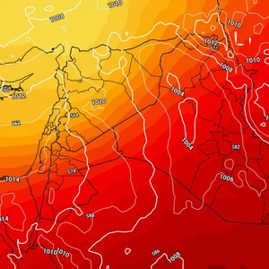 وبحسب الخرائط الجوية في مركز عرب تايم تتأثر البلاد بالمنخفض الجوي الخماسيني الذي سيتمركز فوق العراق ويدفع بالمزيد من التيارات الهوائية الحارة نسبياً نحو البلاد يوم الأربعاء، لذا يطرأ المزيد من الارتفاع على درجات الحرارة ويبلغ ذروته خلال ساعات الظهيرة والعصر حيث تكون درجات الحرارة أعلى من معدلاتها لمثل هذا الوقت من العام بحوالي 4-6 درجات مئوية.