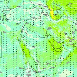 عرب تايم – تشير نواتج مُخرجات النماذج العددية المُعالجة لدى مركز عرب تايم الإقليمي إلى هبوب رياح شمالية غربية نشطة السرعة ومحملة بالغبار اعتبارًا من ليل الاثنين/الثلاثاء وتستمر حتى يوم الخميس، تصل سرعتها إلى ما يقارب 40-50 كم/ساعة، وتكون مصحوبة بهبّات قوية تتجاوز حاجز الـ60 كم/ساعة، ويضطرب الموج بارتفاع يزيد عن المتر ونصف على شواطئ الشرقية في السعودية وقطر والبحرين وأجزاء من شواطئ غرب الإمارات، كما يصل ارتفاع الموج في العمق إلى ما يزيد عن المترين ونصف.