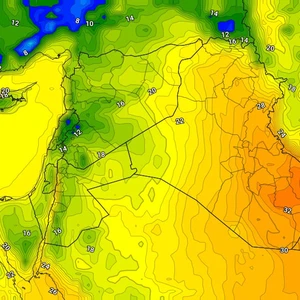 وتتراوح درجات الحرارة ما بين منتصف ونهاية العشرينيات مئوية في مختلف المدن الرئيسية بما فيها العاصمة عمّان، فيما تكون ما بين مطلع ومنتصف الثلاثينيات مئوية في مناطق الأغوار والبحر الميت والعقبة.