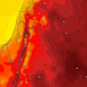 وتتراوح درجات الحرارة العظمى أثناء النهار ما بين مطلع ومنتصف الـ30 مئوية إن شاء الله في المدن الرئيسية بما في ذلك العاصمة عمّان، بينما تصل إلى الـ40 مئوية في مناطق الأغوار والبحر الميت والعقبة إن شاء الله.