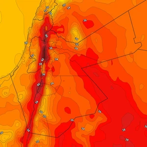 ومن المتوقع أن تكون درجات الحرارة يومي الاثنين والثلاثاء حول منتصف الـ30 مئوية في مناطق عدة من القرى والمدن الأردنية بما فيها الأحياء الشرقية من العاصمة عمان، فيما تصل وربما تتجاوز الـ40 مئوية في مناطق الأغوار والبحر الميت، وهي أعلى من معدلاتها المناخية بعدة درجات مئوية.